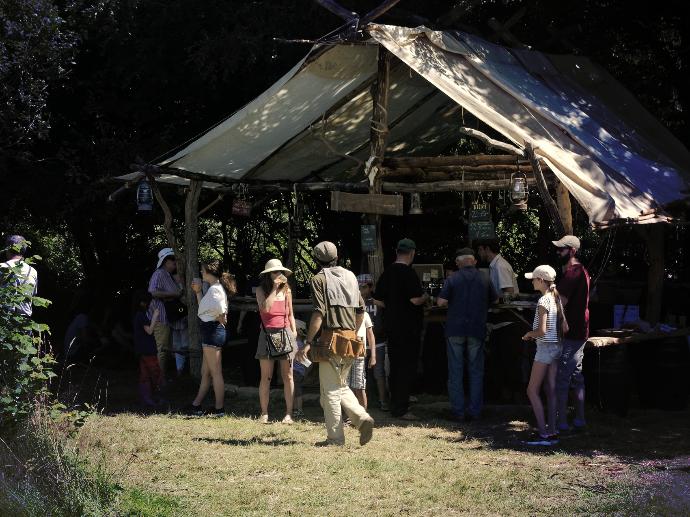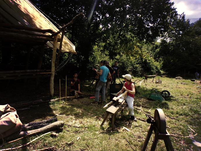 Souvent sans clou, ni vis, nous bâtissons l’archéo-ferme en remettant au goût du jour les techniques anciennes. Mais aussi du montage de barnum, de la réalisation de panneau d’affichage, du défrichage, des tournées de com’, de la couture, de la cuisine collective, bref, il y en a pour toutes les mains, petites et grandes.